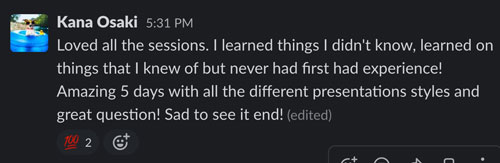 Also, the best part is getting lifetime access to the private Slack channel where we can good knowledge sharing - throughout the year.